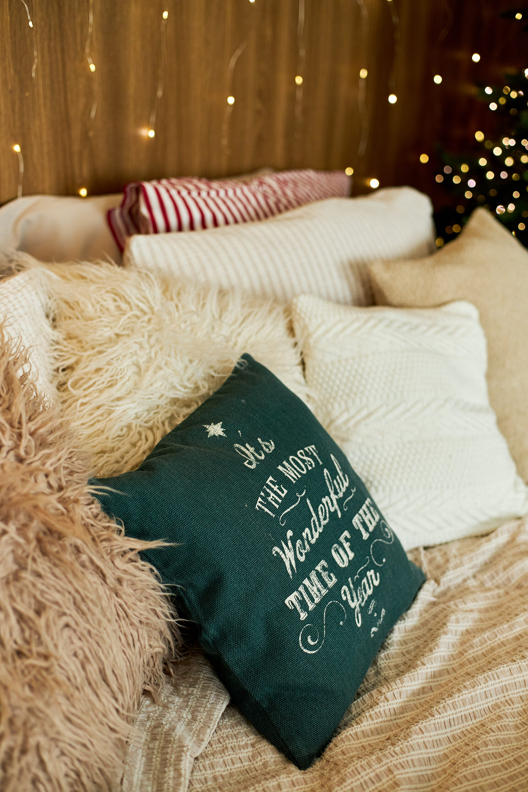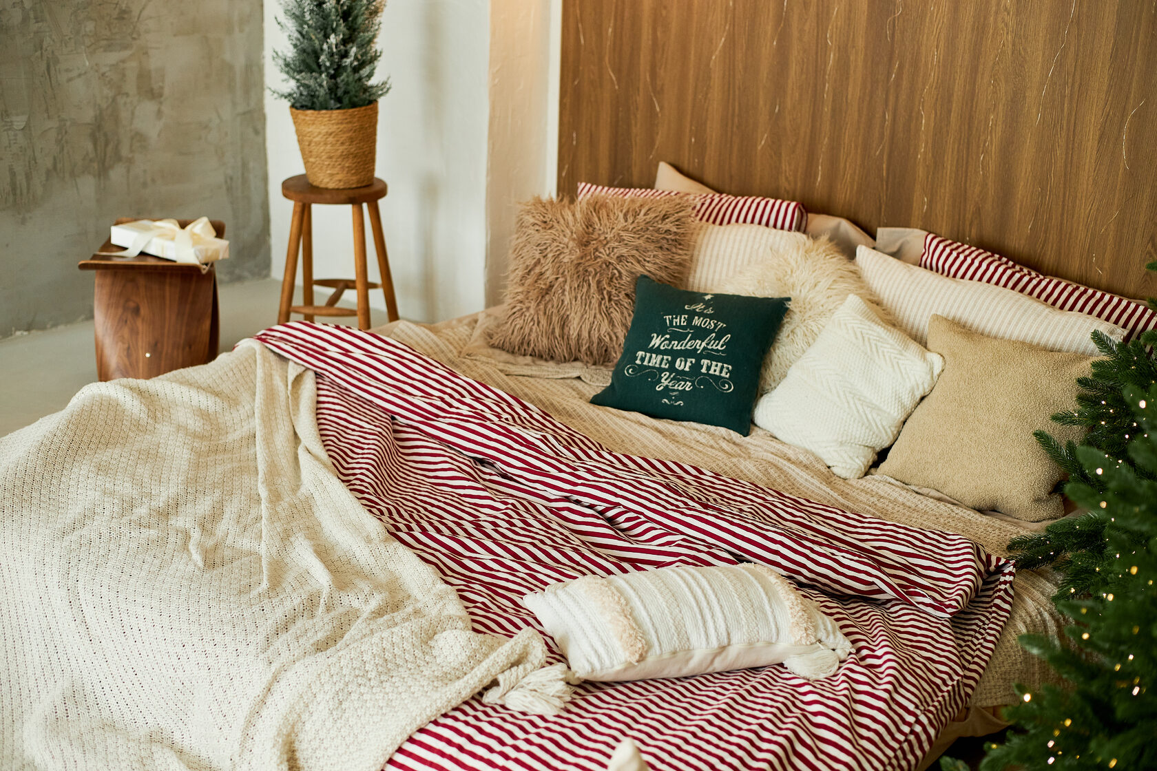 Кровать с уютным текстилем, подушки, пледы — всё здесь для того, чтобы кадры были живыми, тёплыми и максимально естественными.