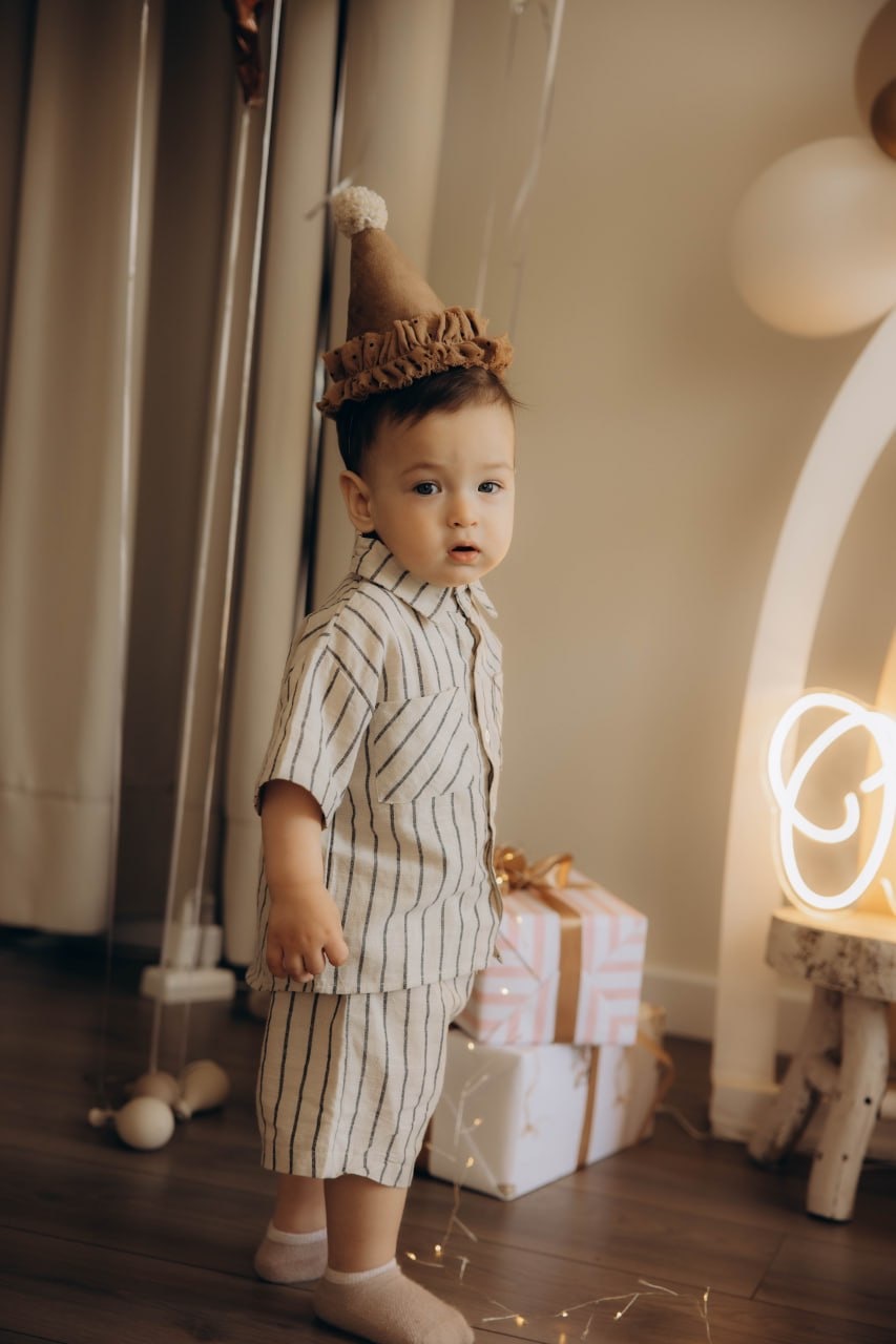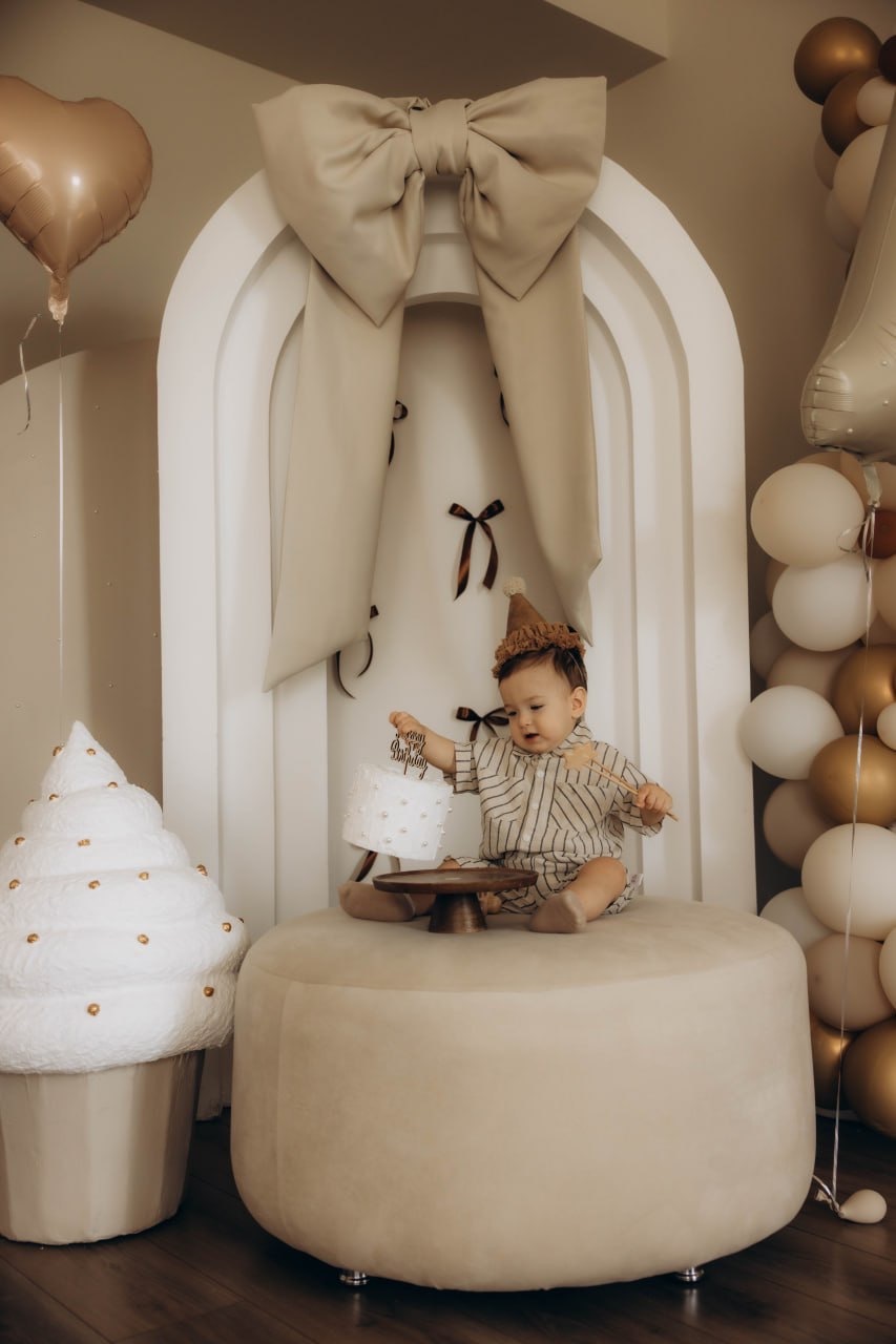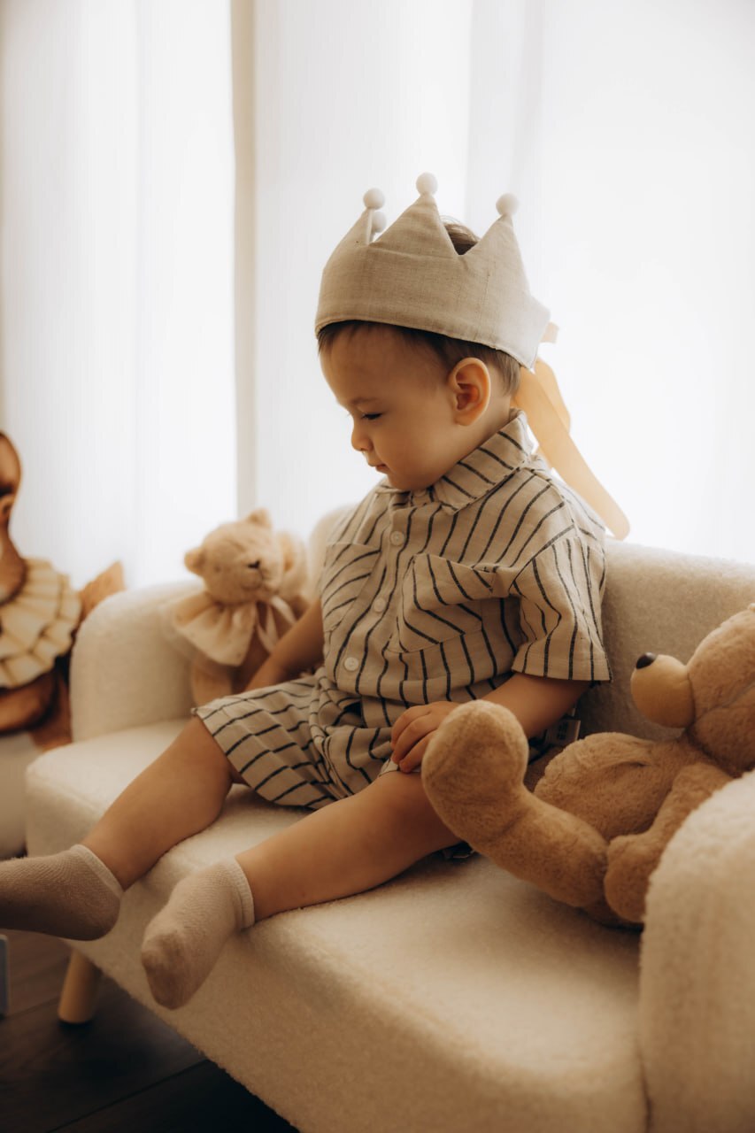В нашей студии есть большой детский гардероб до 5-ти лет, который подходит для детских фотосессий, а также отдельные образы для мальчиков и девочек. Вещи в коллекции идеально сочетаются друг с другом, чтобы вы могли легко подобрать стильные комплекты.