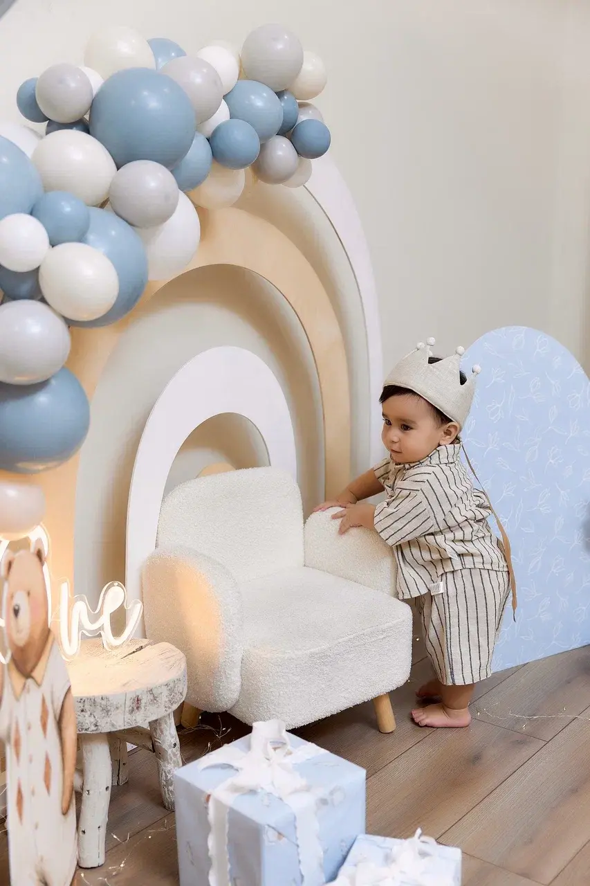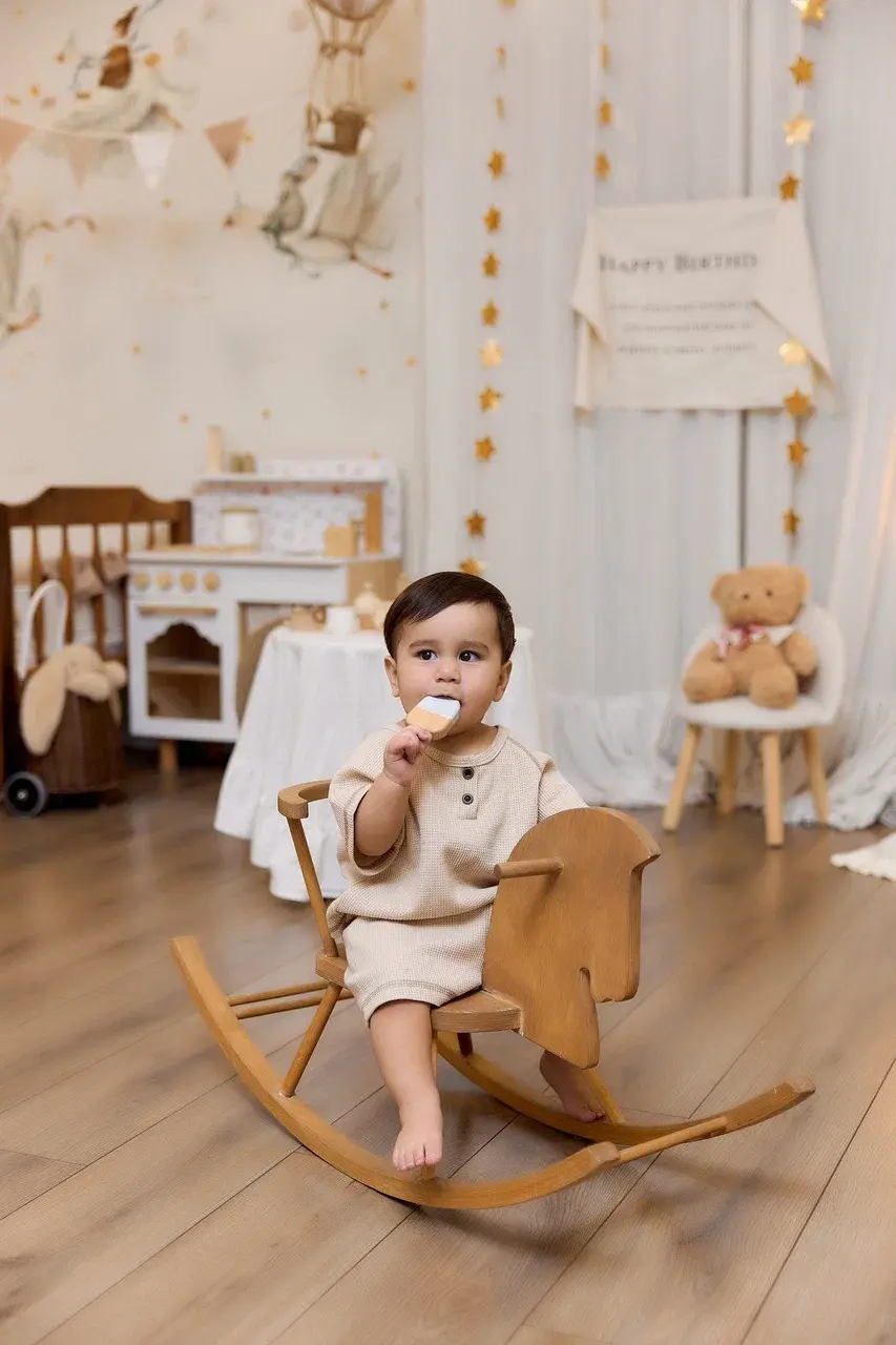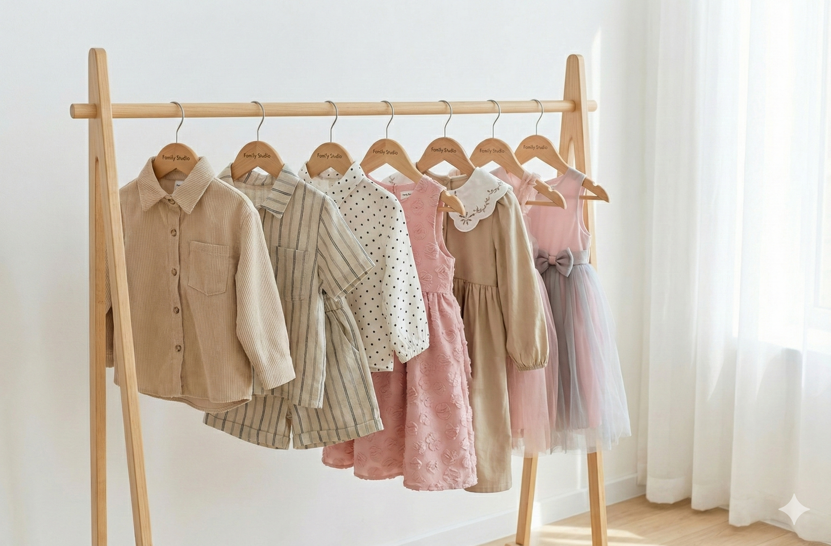 В нашей студии есть большой детский гардероб до 5-ти лет, который подходит для детских фотосессий, а также отдельные образы для мальчиков и девочек. Вещи в коллекции идеально сочетаются друг с другом, чтобы вы могли легко подобрать стильные комплекты.